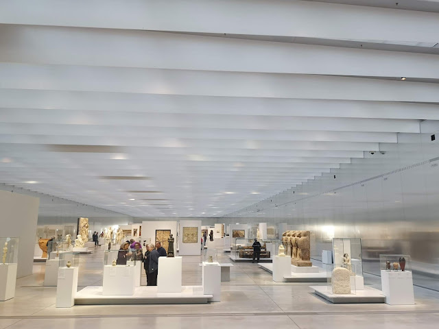 La propia estructura del edificio sorprende por su sencillez. Solo existe una planta a ras de suelo y los materiales dominante son el cristal y el acero. Colores neutros y minimalismo para que todo el protagonismo lo adquieran los objetos expuestos. Además de una sala dedicada a exposiciones temporales, el espacio principal es la denominada Galería del Tiempo, un pabellón diáfano de 120 metros de longitud con paneles móviles para adaptarse a las necesidades de la exposición. En esta galería se cuenta la historia de la Humanidad de manera cronológica desde la Antigüedad hasta el siglo XIX. Un sorprende y fascinante recorrido por cinco mil años de civilización a través de esculturas, pinturas y diversos objetos decorativos.